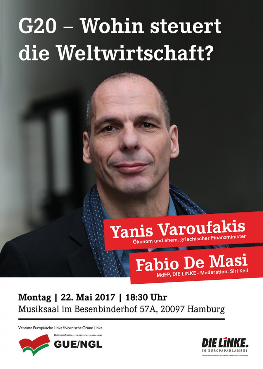 Die Weltwirtschaft steckt weiter in der Krise. Wohin steuert der Kapitalismus und welche Alternativen sind machbar? Darüber unterhält sich der Europaabgeordnete Fabio De Masi mit dem ehemaligen griechischen Finanzminister und Ökonomen Prof. Yanis Varoufakis. Die Moderation übernimmt Siri Keil.