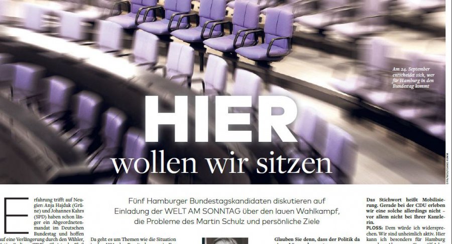 "Fünf Hamburger Bundestagskandidaten diskutieren auf Einladung der WELT AM SONNTAG über den lauen Wahlkampf, die Probleme des Martin Schulz und persönliche Ziele.