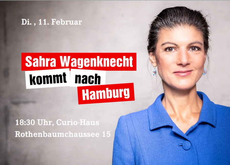 Mit wem? Sahra Wagenknecht, Fabio de Masi (Bundestagsabgeordneter für Die Linke), Olga Fritzsche (Kandidatin Landesliste Platz 5) und David Christopher Stoop (Kandidat Landesliste Platz 2)."