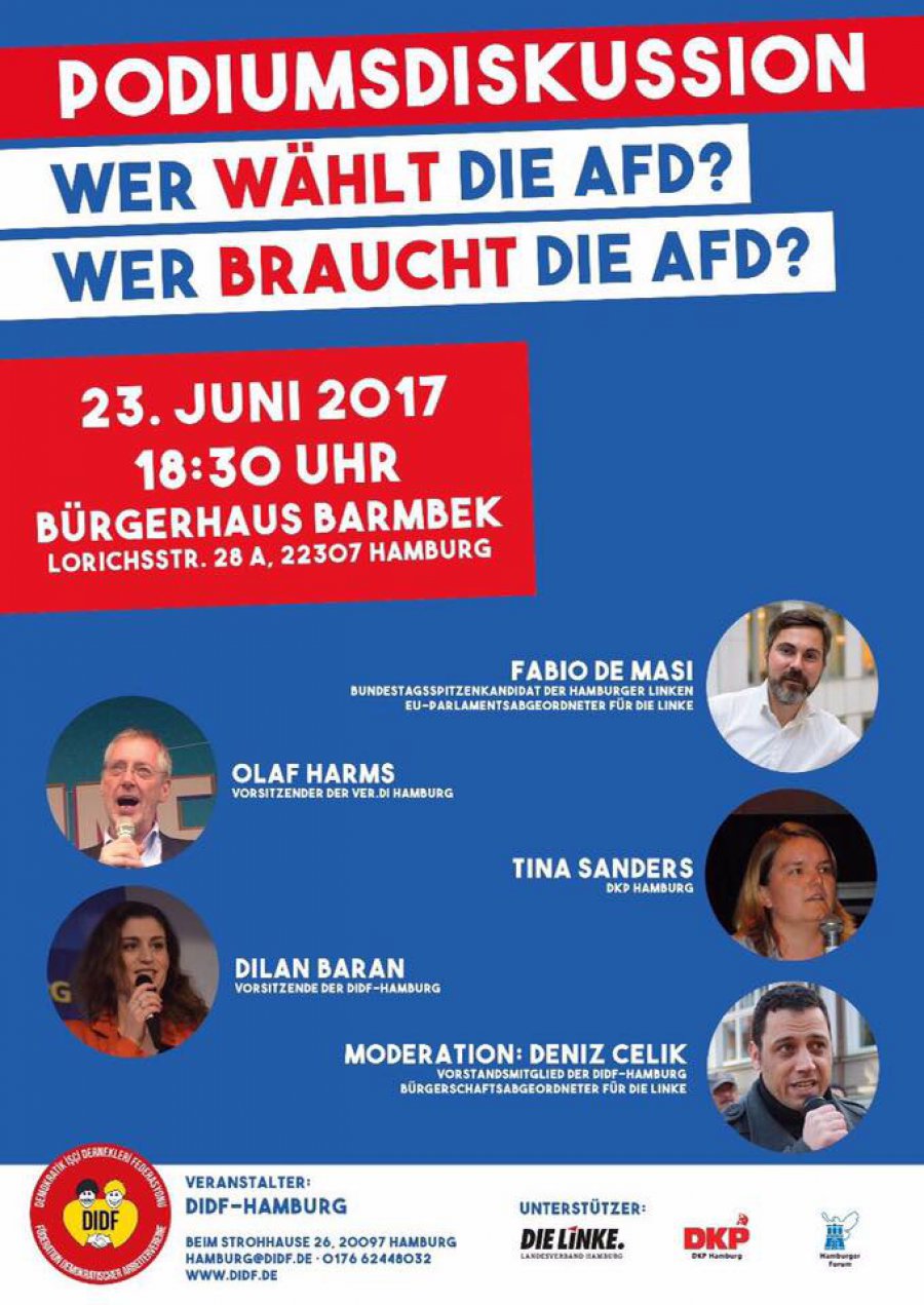 Nach den Wahlerfolgen in den Landtagswahlen im Saarland, in Schleswig-Holstein und in Nordrhein-Westfalen ist die AfD nunmehr in 13 Landtagen vertreten. Auch ihr Einzug in den Bundestag in den Wahlen am 24. September 2017 scheint laut Umfragen so gut wie sicher. Ihr Konzept bleibt dabei das Gleiche: die AfD nutzt die Ängste und Sorgen der Menschen, um Rassismus zu schüren und von den wahren Ursachen für Armut und Arbeitslosigkeit in Deutschland abzulenken. Und von diesen Ängsten und Sorgen gibt es in Deutschland genug: