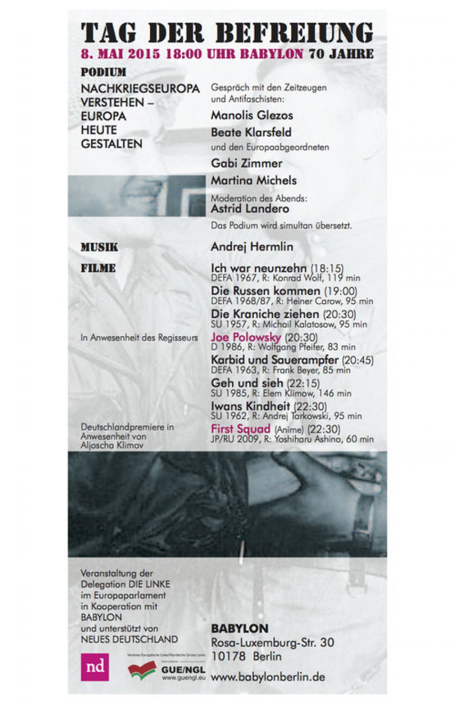 Veranstaltung mit Manolis Glezos und Beate Klarsfeld, sowie Martina Michels und Gabi Zimmer zum 70. Jahrestag der Befreiung.