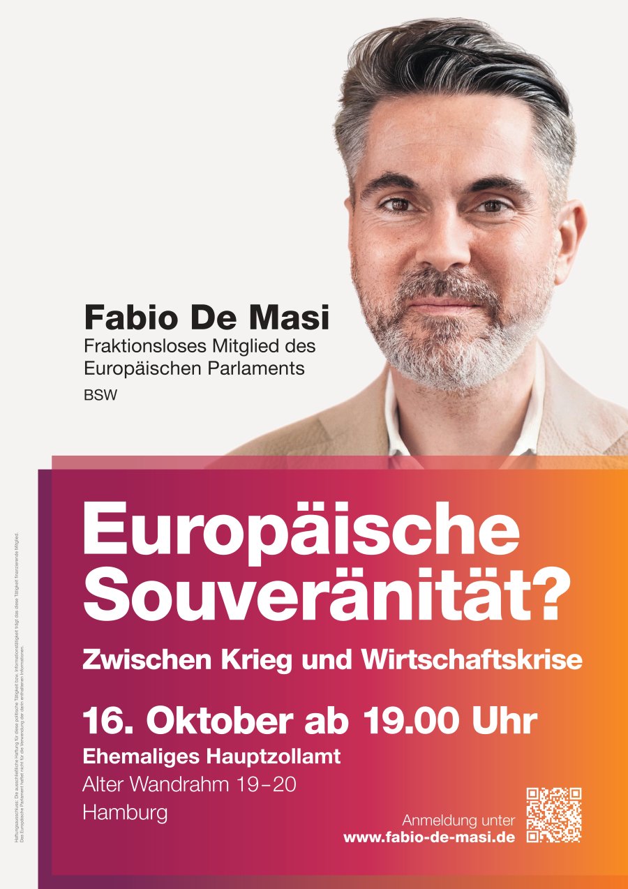 Über mögliche Auswege möchte Fabio De Masi (fraktionsloses Mitglied des Europäischen Parlaments, BSW) mit Ihnen/Euch ins Gespräch kommen.