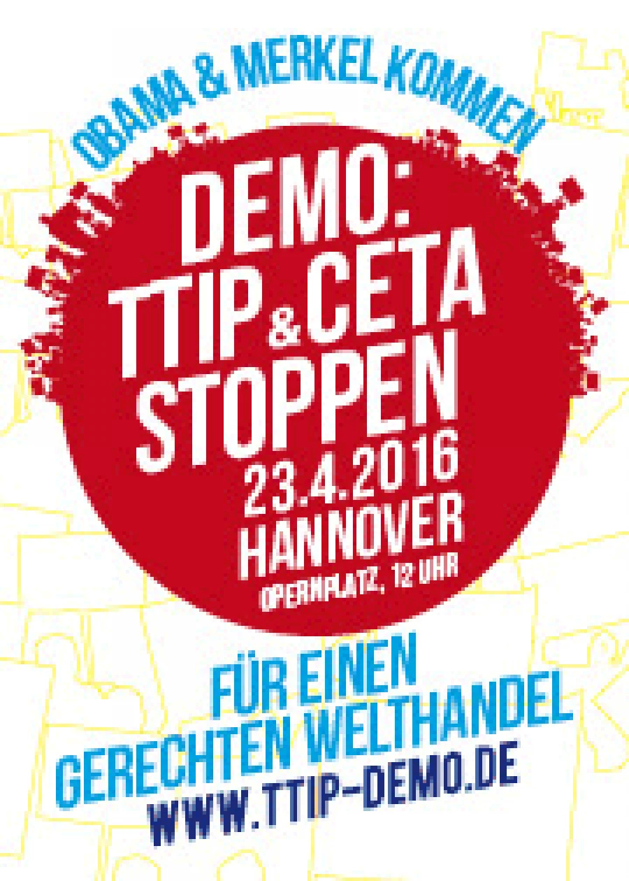 Dagegen tragen wir unseren Protest auf die Straße! Getragen von einem breiten Bündnis demonstrieren wir mit zehntausenden Menschen am Samstag, den 23. April in Hannover – unmittelbar vor dem Besuch Obamas.