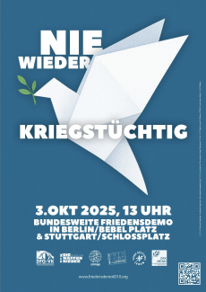 Die Auftaktkundgebungen beginnen um 13 Uhr – in Berlin auf dem Bebelplatz, in Stuttgart auf dem Schlossplatz. Im Anschluss ziehen wir durch die Städte, die Abschlusskundgebungen enden gegen 17 Uhr. In Berlin spricht u.a. Christian Leye (BSW), in Stuttgart Sevim Dagdelen (BSW). Alle Infos, Materialien, Mitfahrmöglichkeiten und den Bündnisaufruf findet Ihr hier: |